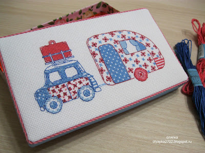 и приготовления "походного перекуса". Поэтому я вышила этот маленький "поезд", который сразу выдает автопутешественников.